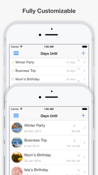 휴가까지의 남은 날짜를 카운트다운하고, 친구의 생일을 기억하고, 다가오는 일정이나 이벤트를 추적하거나, 목표를 모니터링하고 싶은 경우에도 Days Until가 도움이 됩니다. 이 앱은 이벤트를 색상 카테고리로 그룹화하고, 소셜 미디어를 통해 친구들과 공유하며, 사진 라이브러리나 카메라에서 자신의 배경을 적용할 수 있습니다.